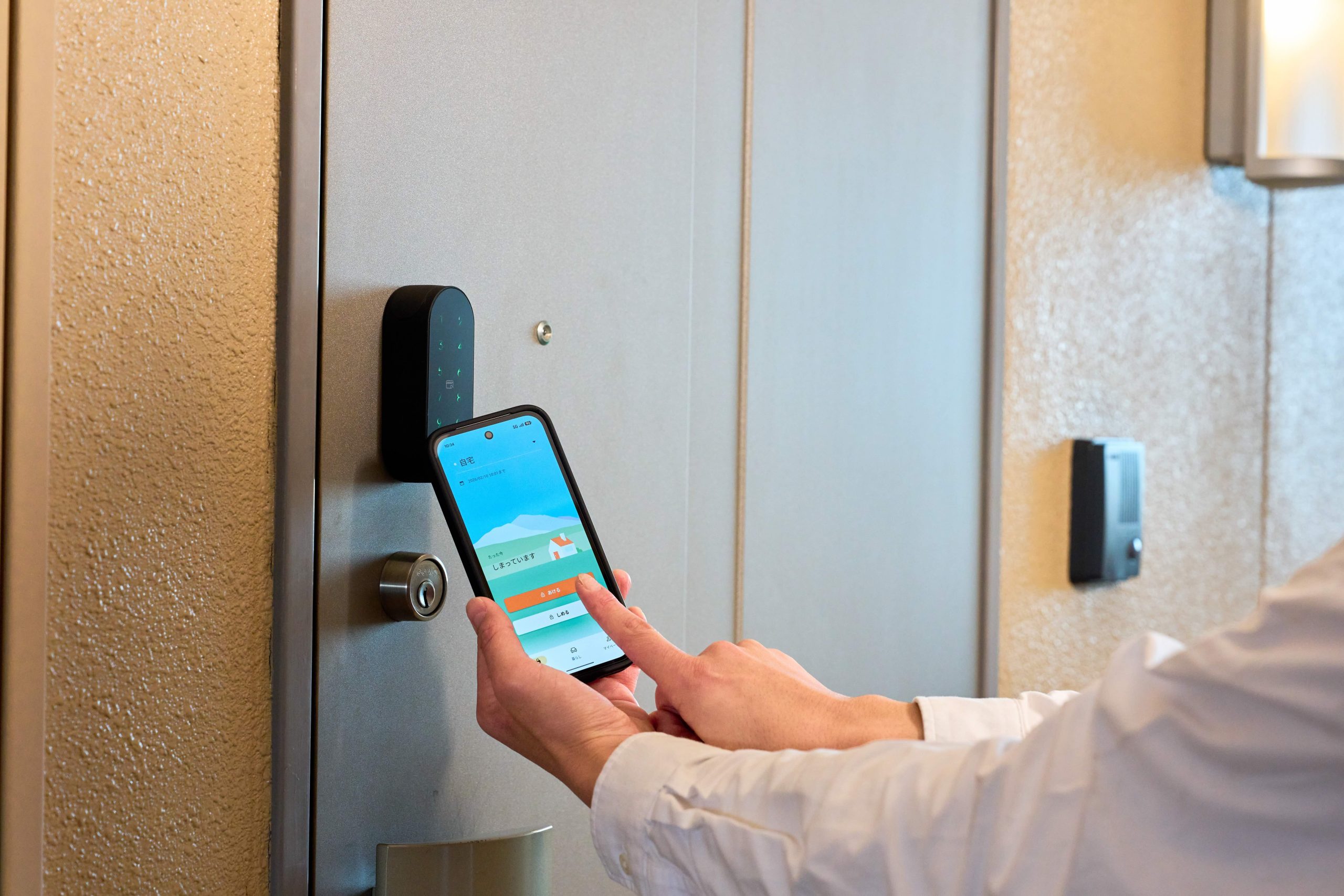 スマホで鍵を開ける様子(各住戸ドア)